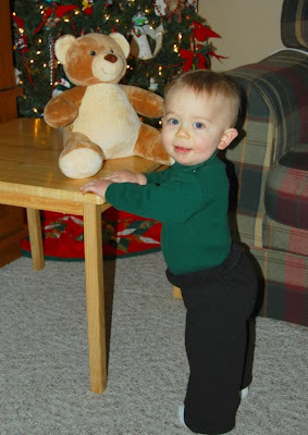I guess that's about it including the crawling, pulling up, standing, cruising, holding a bottle, and clapping. Not bad for a month, huh? :)
